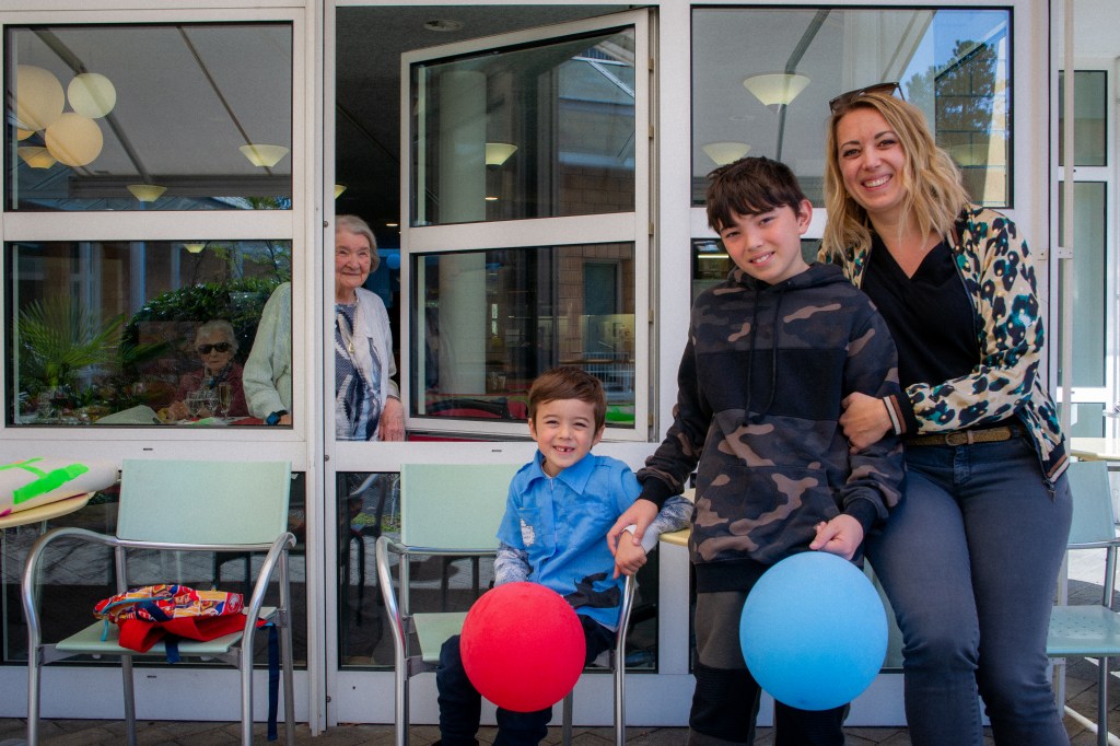 Dans un cadre de strict confinement, toutes les maisons de retraite en Suisse sont isolées, afin d’éviter la contagion du Coronavirus. C’est donc avec une autorisation préalable que nous lui avons rendu visite afin de la saluer et lui chanter un Joyeux Anniversaire depuis l’extérieur. Les garçons lui avaient préparé une belle pancarte et des cadeaux.