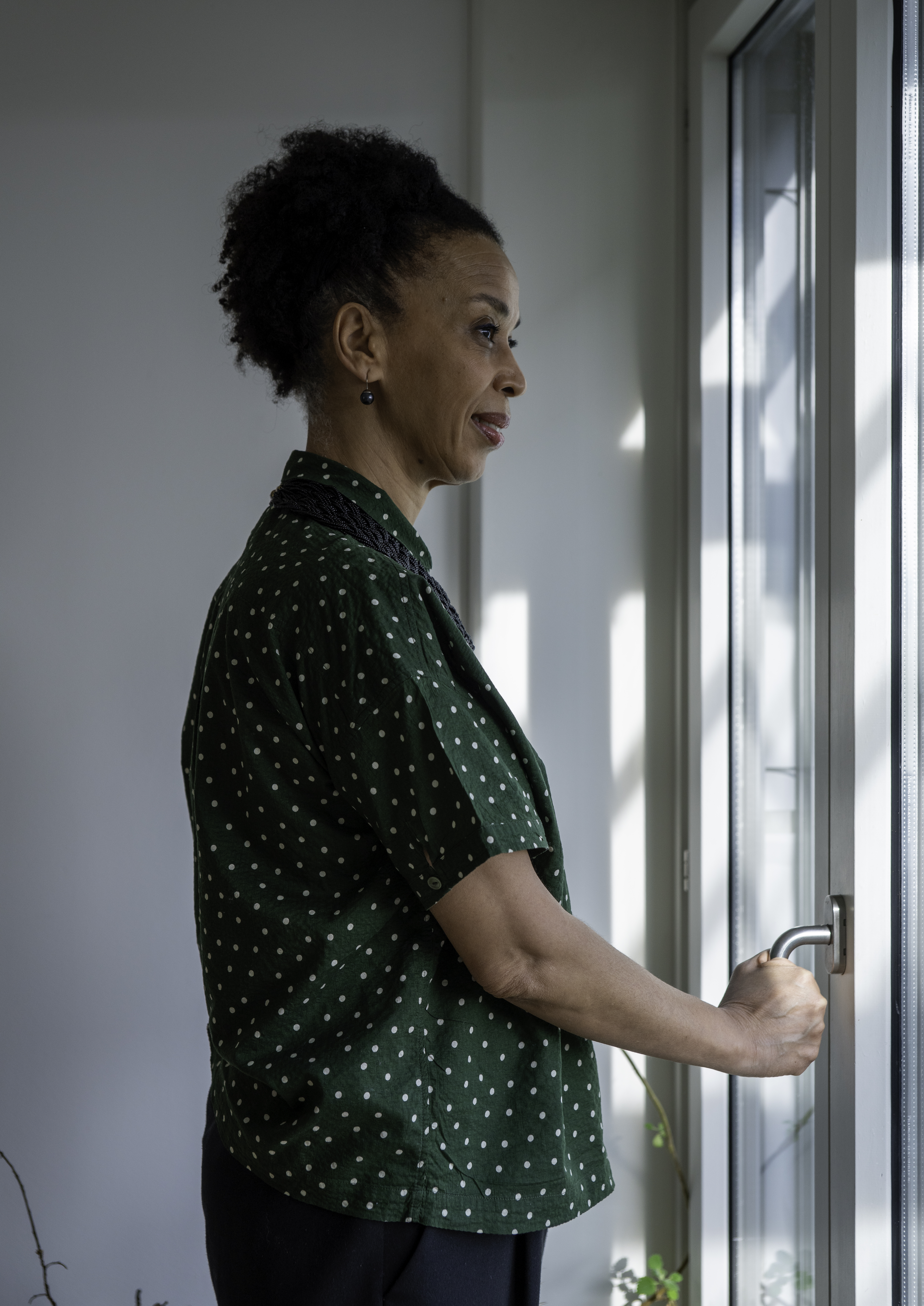I asked her to pose for me. First, a series of professional portraits she could use in her work context. Then, something more personal: a visual report in the intimacy of her home, exploring her space and light. She accepted enthusiastically, and, between cups of tea, conversations, and bursts of laughter, we created these images. Generously, she allowed me to share a few of them here.