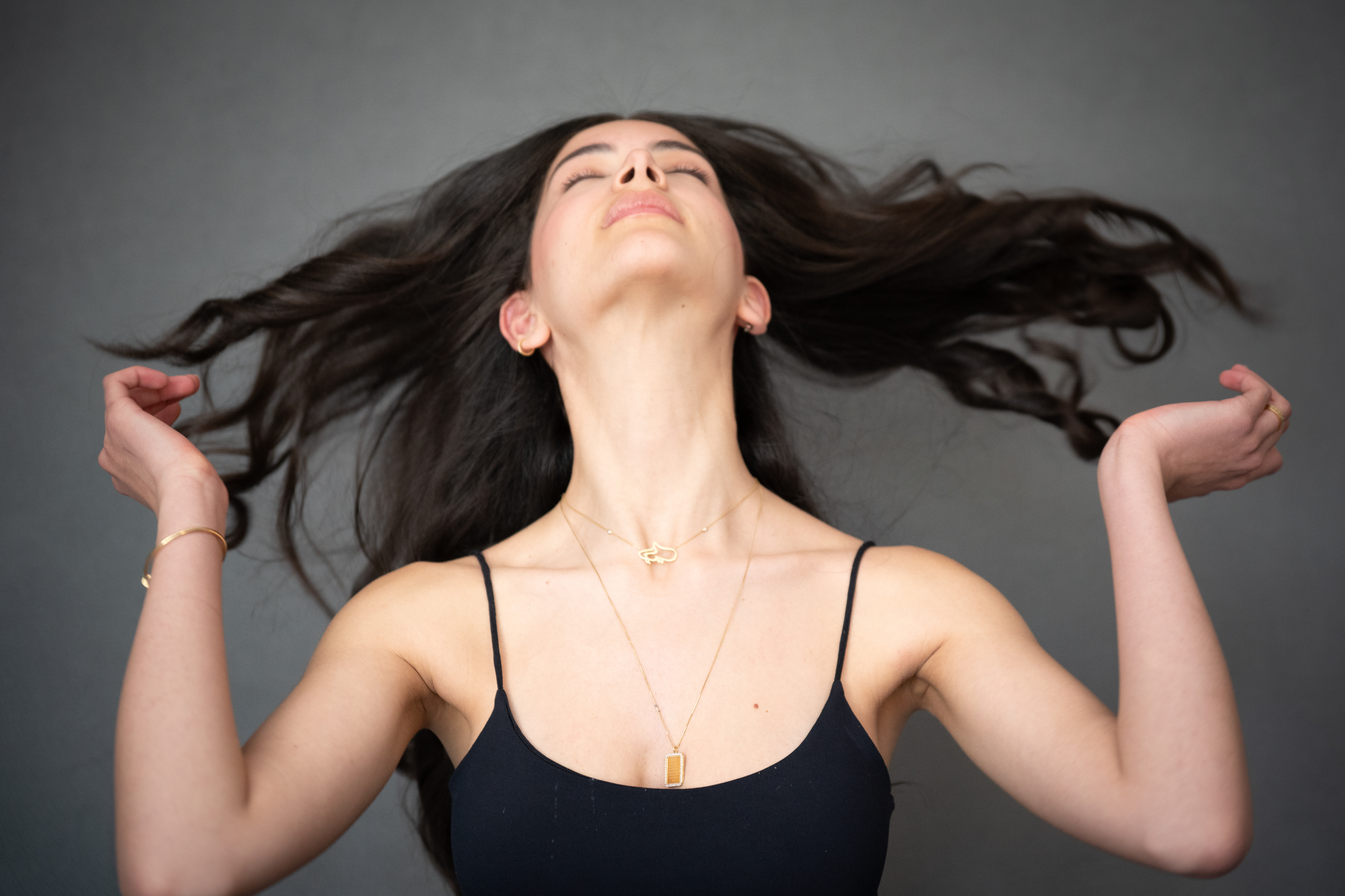 I had the creative support of Claudia, who has experience as a model. We had a lovely time — lots of laughs, my caring gaze behind the lens, and a background soundtrack blending Middle Eastern and Latin American music. The session was relaxed and very productive.
